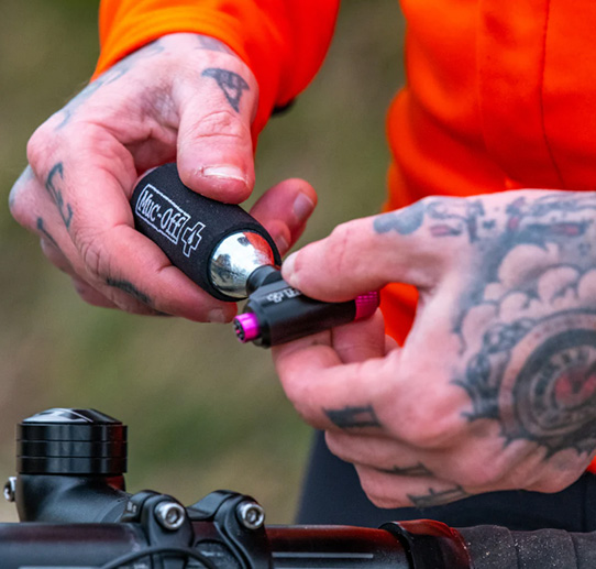 Muc-Off hace que el tubeless sea impecable. Sus válvulas, selladores y cinta de llanta están diseñados como un sistema completo que es tan fácil de instalar como de usar.